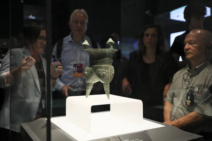 2025年10月13日,第二届世界中国学大会“中国式现代化”主题参访活动嘉宾在上海博物馆东馆青铜馆参观。新华社记者 王翔 摄