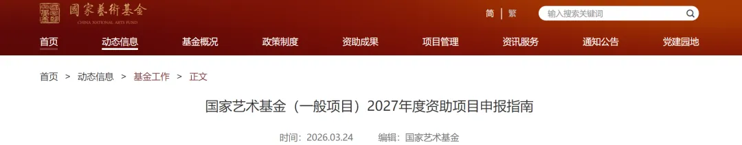 中国文艺网丨国家艺术基金(一般项目)2027年度资助项目申报指南发布