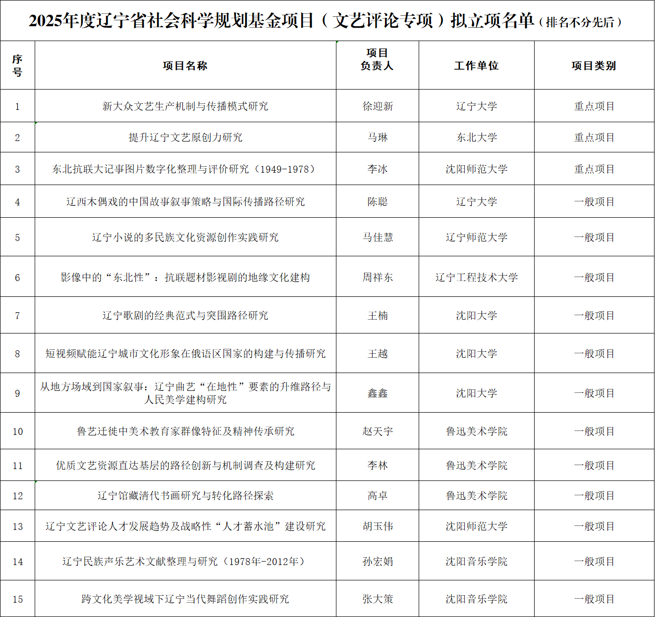 附件:2025年度辽宁省社会科学规划基金项目(文艺评论专项)拟立项名单