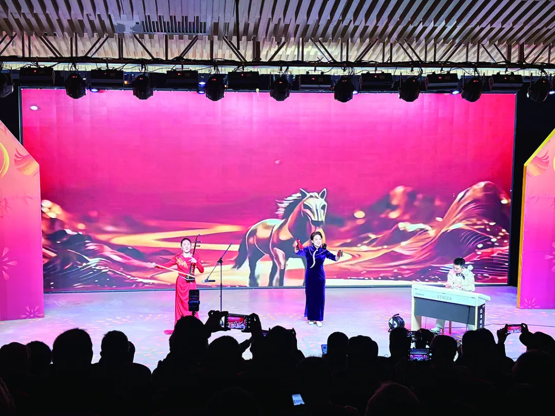 京东大鼓《让座》以朴实的故事传递正能量,悠扬曲调中满是温情,让现场暖意融融……十余个节目有序登场,观众们时而捧腹大笑,时而凝神倾听,掌声、笑声、叫好声交织成最动人的新春乐章,不少市民表示:“传统曲艺越听越有味道,这才是过年该有的氛围。”
