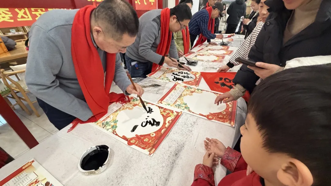 活动中,书法家们与青少年书法爱好者齐聚一堂,挥毫泼墨、笔走龙蛇,围绕“新春纳福”“阖家安康”“振兴发展”等主题,精心创作。截至目前,共开展活动2场,20余名书法家积极参与,为群众书写春联、福字150余幅(对)、年画50幅,全部免费赠送给现场群众,让大家在墨香中感受传统文化的魅力,营造喜庆红火的新春氛围。