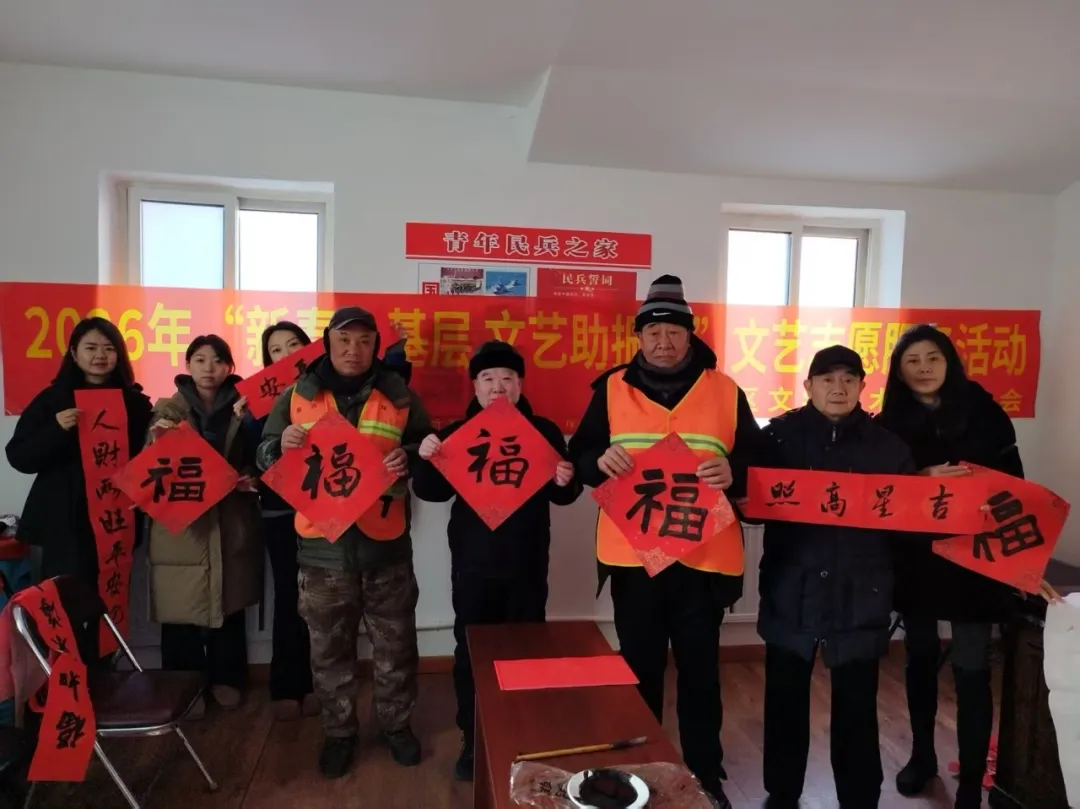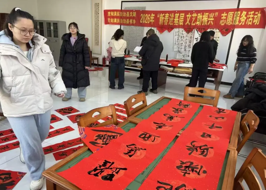 春节前夕,宽甸文联围绕“新春进基层 文艺助振兴”主题,聚焦群众文化需求,以群众喜闻乐见的活动为载体,组织文艺志愿者深入社区、企业、文明实践中心,为群众书写对联、送福字,弘扬中华优秀传统文化,营造吉祥红火的春节氛围。