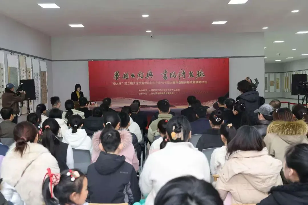 1月10日,由大连市普兰店区文联主办、普兰店区书法家协会承办的“墨韵出经典 书风传文脉”普兰店区中小学生书法作品展开幕式在普兰店区书法家协会展厅举行,旨在弘扬中华优秀传统文化,激发青少年对书法艺术的热爱,营造浓厚的校园文化氛围。大连市书法家协会名誉主席、大连印社名誉社长李宴清,大连市文联副主席、市书法家协会主席高玉刚,普兰店区委副书记、区长张延松出席。普兰店区委常委、宣传部部长郑传海,大连市书法家协会秘书长杜林出席并致辞。
