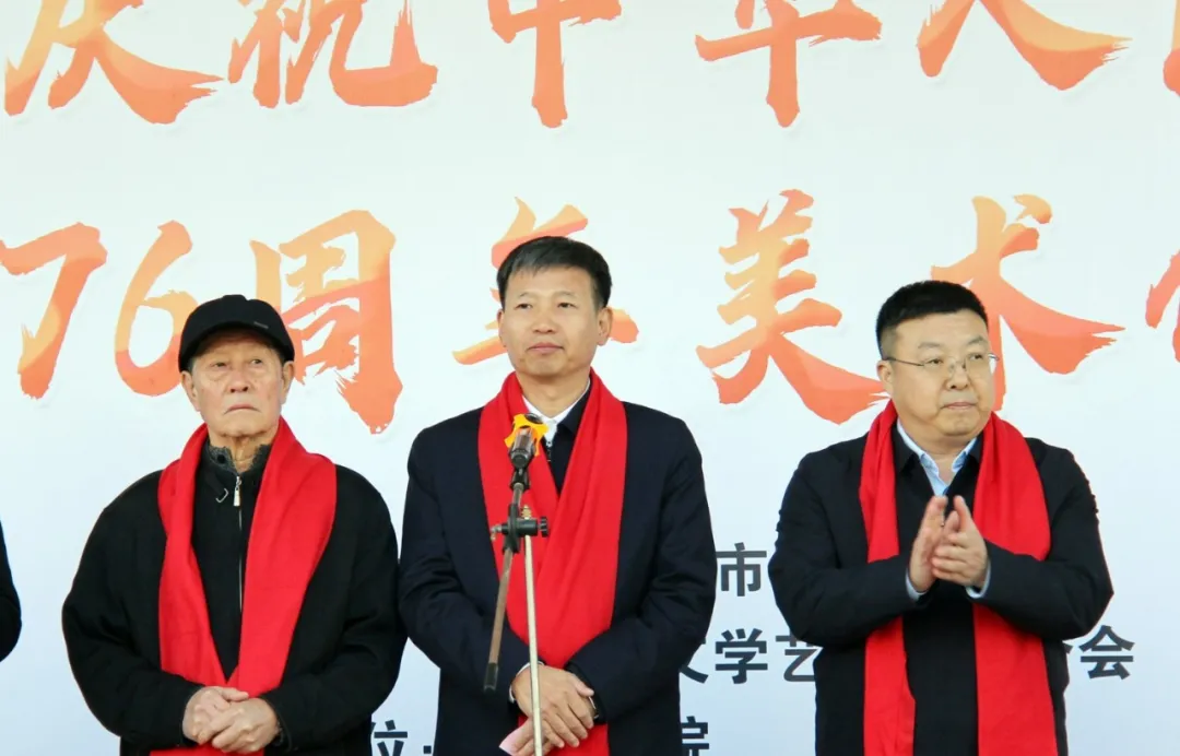 龙首晴空含新韵,辽北长风颂华章。近日,铁岭市庆祝中华人民共和国成立76周年美术作品展在铁岭市科学馆隆重开幕。本次展览由铁岭市委宣传部、市文联主办,铁岭画院、市美协、市科学馆承办。市政协主席冯智出席开幕式并宣布展览开幕,市委常委、市委宣传部部长辛彦军在开幕式上讲话。