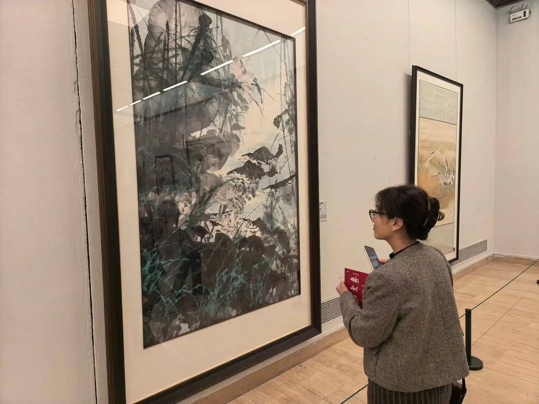 展览中,由辽宁省美协主席王易霓与王宏、黄洪涛、吕子扬、郭洪权等艺术家共同创作的《灵韵闾山图》长卷,成为许多观众的“打卡点”。“太震撼了!仿佛亲眼见到了大美辽宁!”广州观众王粟激动地举起手机,记录下这一艺术盛宴。