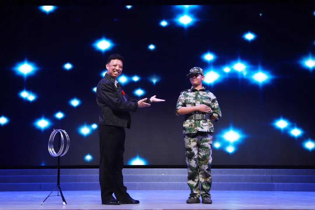 互动魔术《中国环》 表演者:王立巍 演出在极富东北人民热情风格的大秧歌中拉开序幕,省舞协副主席、著名舞蹈家王韬瑞和评剧表演艺术家吴丹阳分别献上舞蹈《不二》和评剧花派代表剧目《黛诺》选段,来自不同领域艺术家高水平演出,使观众深受感染与震撼。省杂协副主席、著名魔术师王立巍带来了互动魔术《中国环》,让观众切身感受了魔术的神奇与精彩。舞蹈《浅云间》《唐印》展示了中华民族优秀传统文化的意蕴之美,京剧《智取威虎山》选段、京歌《梨花颂》展示了戏剧的独特韵味;《母亲是中华》《相爱》《顶花坛》等节目全面展示辽宁文艺的精彩纷呈。文艺志愿演出在省音协副主席、著名歌唱家张岩生与全场观众共唱《我爱你中国》的歌声中走进尾声。来自辽宁的艺术家们充分展示文艺工作者的使命担当,倾心演绎,精彩奉献,文艺节目展示出东北黑土地的别样风情和辽宁人民对塔城观众的一片深情,受到了兵团九师官兵、白杨市机关干部、学生及社区百姓的热烈欢迎和充分肯定。