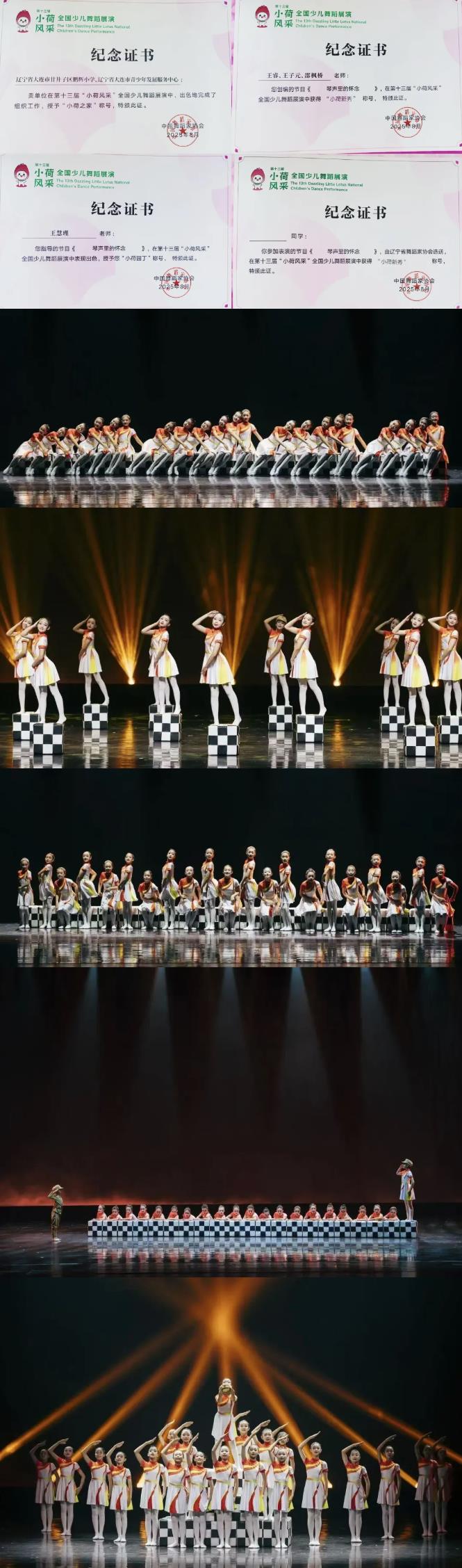 8月2日,由中国文联、中国舞协、河南省文联、中共郑州市委宣传部主办的第十三届"小荷风采"全国少儿舞蹈展演在河南郑州圆满落幕。辽宁省舞协推选的3部原创少儿舞蹈绽放全国舞台,其中《大场儿》荣获“小荷之星”称号,《琴声里的怀念》《风翎炽童》荣获"小荷新秀"称号。展演队伍同时还获得“小荷之家”、“小荷之星”“小荷园丁”等荣誉。