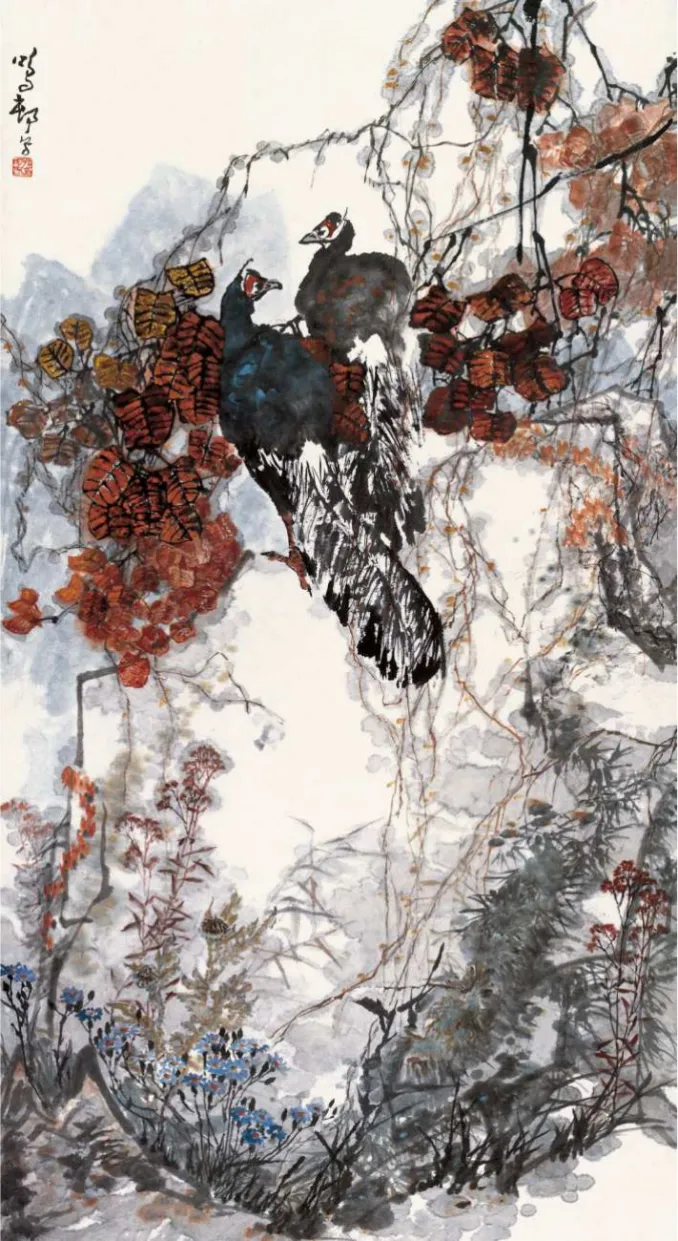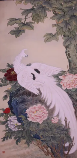 《牡丹白凤》(鲁迅美术学院藏) 其中,122件美术作品包含中国画、油画、版画等多个画种及雕塑作品,既有王盛烈、冯远、宋雨桂、冯大中、宋惠民、韦尔申、李象群等前辈、名家的精品力作,也有历届全国美展获奖、入选国家或省重大历史题材创作工程的优秀作品。