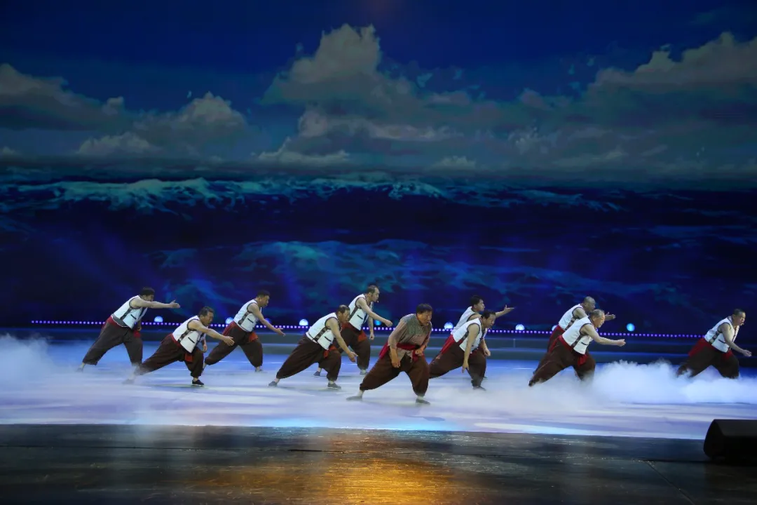 由大连市长海县长海号子传承艺术团带来的长海号子《喊海》,作为起源于辽宁省大连市的长海地区的民间艺术,承载着深厚的地域文化底蕴,是当地极具代表性的传统艺术形式,被列入国家级非物质文化遗产。它诞生于海洋劳作,是渔民在拉网、起锚、摇橹等集体劳动中,为统一步调、激发力量而创造的原生态歌唱形式。舞台上,长海号子传承人以粗犷豪放、节奏鲜明的演唱,将观众带入劳作现场。