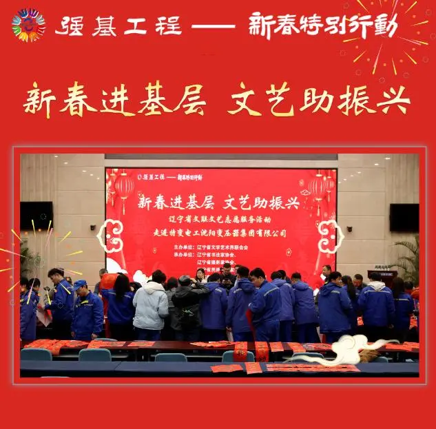 为丰富职工节日文化生活,优化营商环境,营造喜庆祥和的新春氛围,1月28日下午,“新春进基层 文艺助振兴”省文联文艺志愿服务暨“万福迎春”书法公益活动,先后走进特变电工沈阳变压器集团有限公司、沈阳微控新能源有限公司两家民营企业,文艺志愿者们以笔墨传情、镜头留韵、非遗送福的形式,为企业职工送上浓浓的新春祝福。