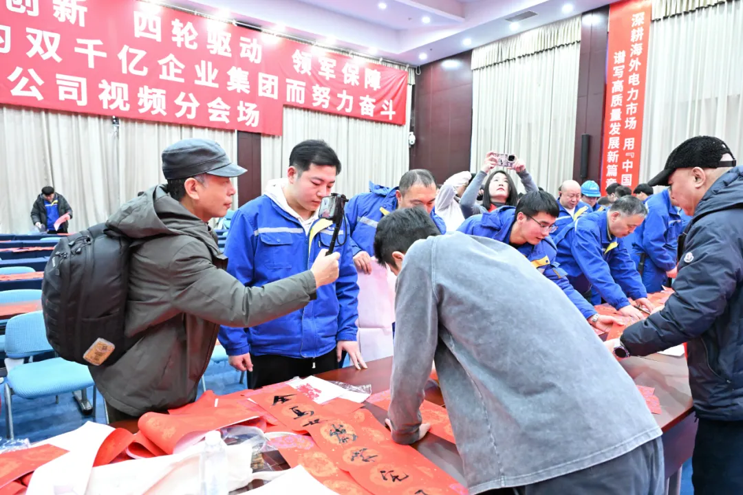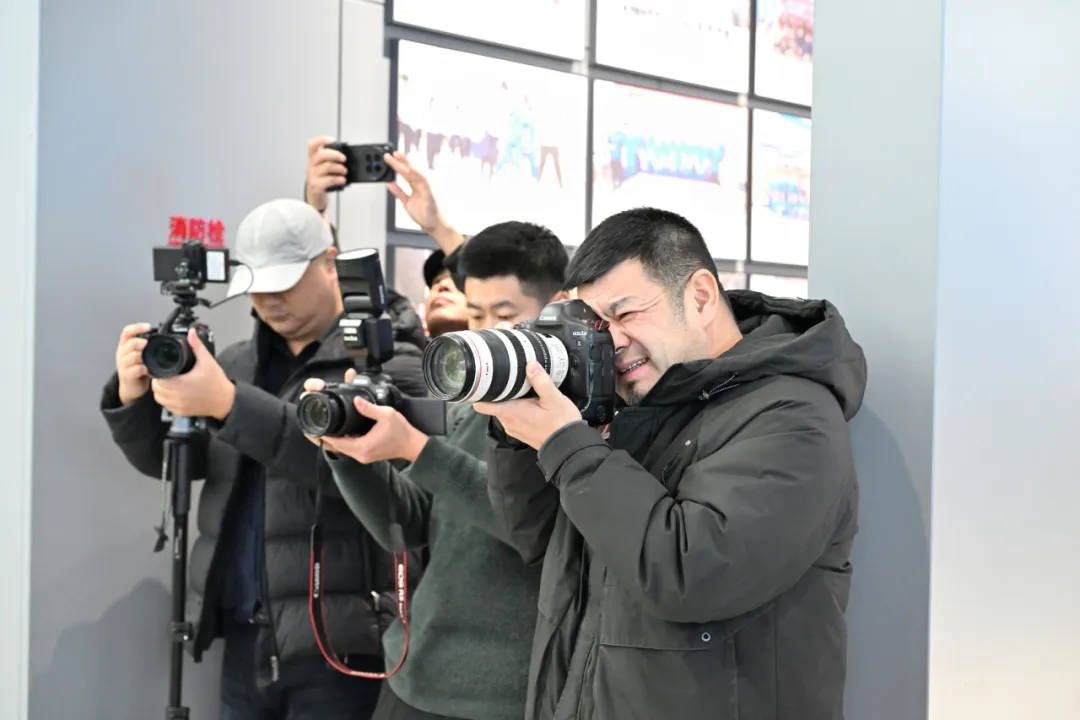 省摄协副主席 谢军(右一) 省摄协副主席李永宏、谢军及摄影志愿者们,穿梭在活动现场,用镜头捕捉精彩瞬间。他们聚焦一线职工的专注身影、领取福字时的灿烂笑容、与艺术家互动的温馨画面,将职工们对新春的期盼、对企业的热爱定格成永恒,一张张照片承载着满满的温暖与祝福,成为这个新春里最特别的纪念。