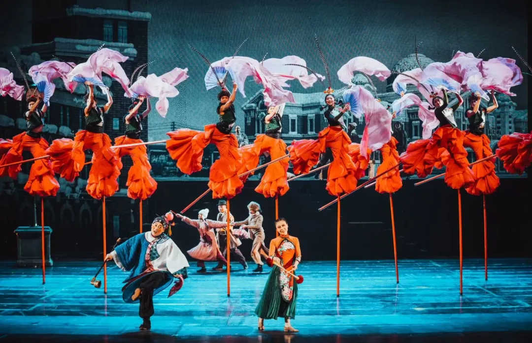 技艺之上,还要有剧情。《先声》的每个动作都是故事情节和人物情绪的表达。舞狮、高跷、腾空飞杠、爬杆、车技、网吊等杂技与魔术节目被打碎重组,每项技艺都不是孤立的技巧展示,而是推动剧情、传递情感的叙事语言。