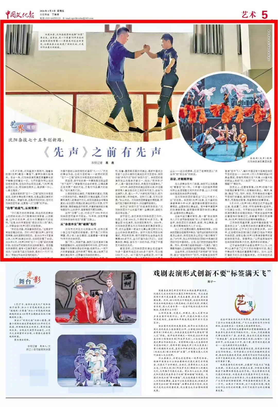 中国文化报关注丨沈阳杂技七十五年创新路:《先声》之前有先声