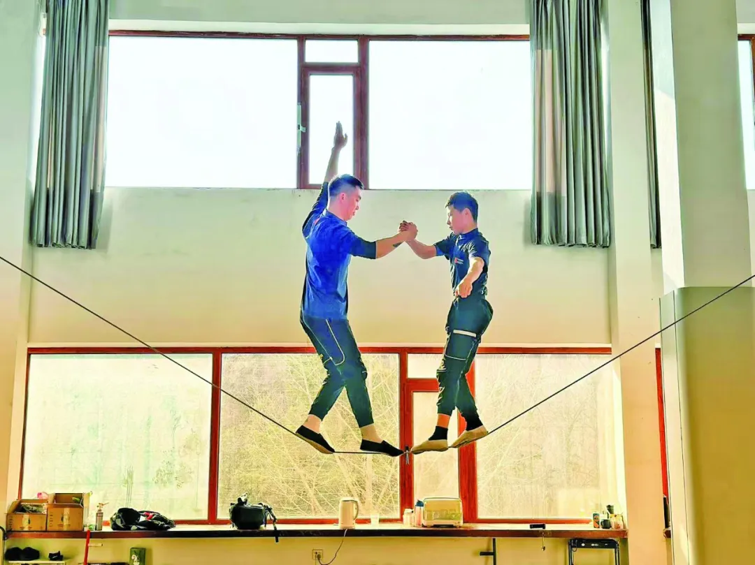 这些年来,沈阳杂技团不断刷新“技”的极限:首创“倒挂柳树叶”技巧,中国高空杂技节目由此诞生;首创“飞车走壁”和“环球飞车”;首演“空中飞人”,填补中国没有大型高空杂技节目的空白……2022年,《双人升降软钢丝》问鼎金菊奖,李维和周晓汶在7米高、0.8厘米粗的钢丝上完成“双人抱顶”“双人肩顶”“双人大摆翻下”等动作。